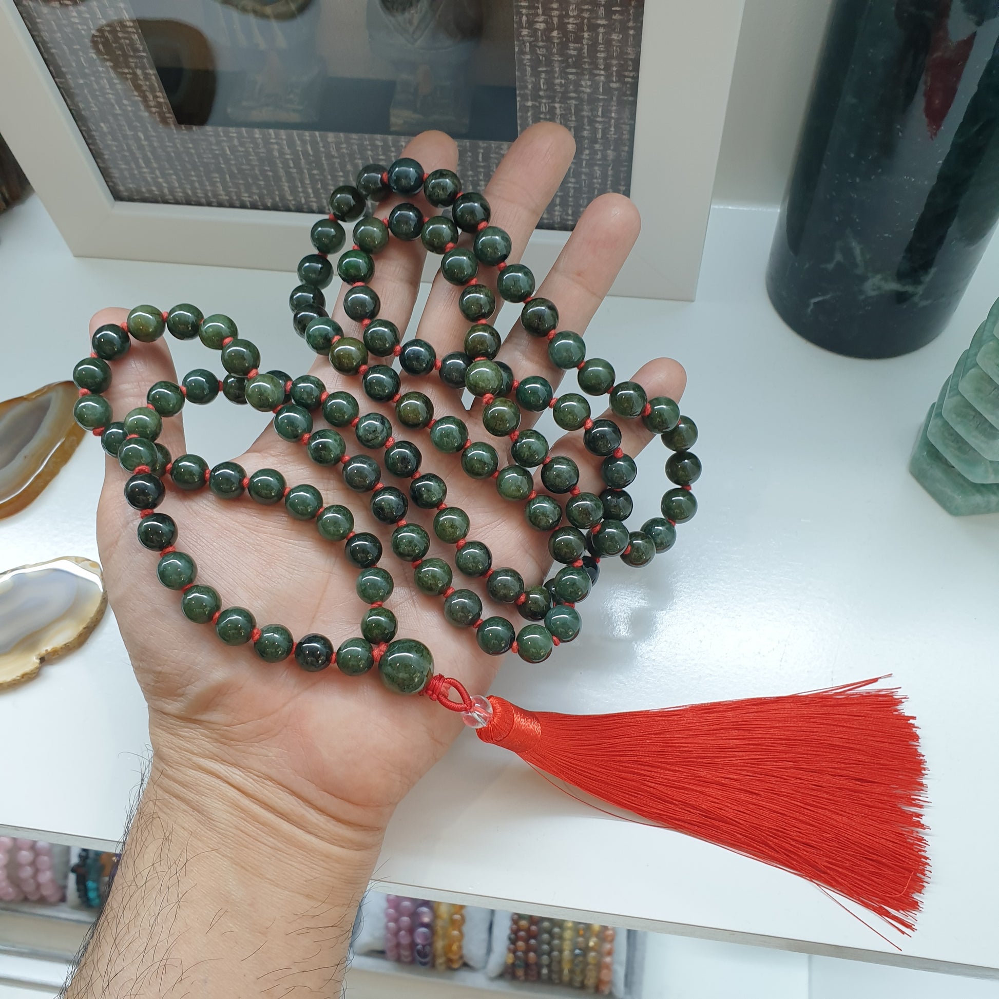 108 Beads Jade Japa Mala | Green Jadeite Beads - Type A | Handcrafted Meditation Beads