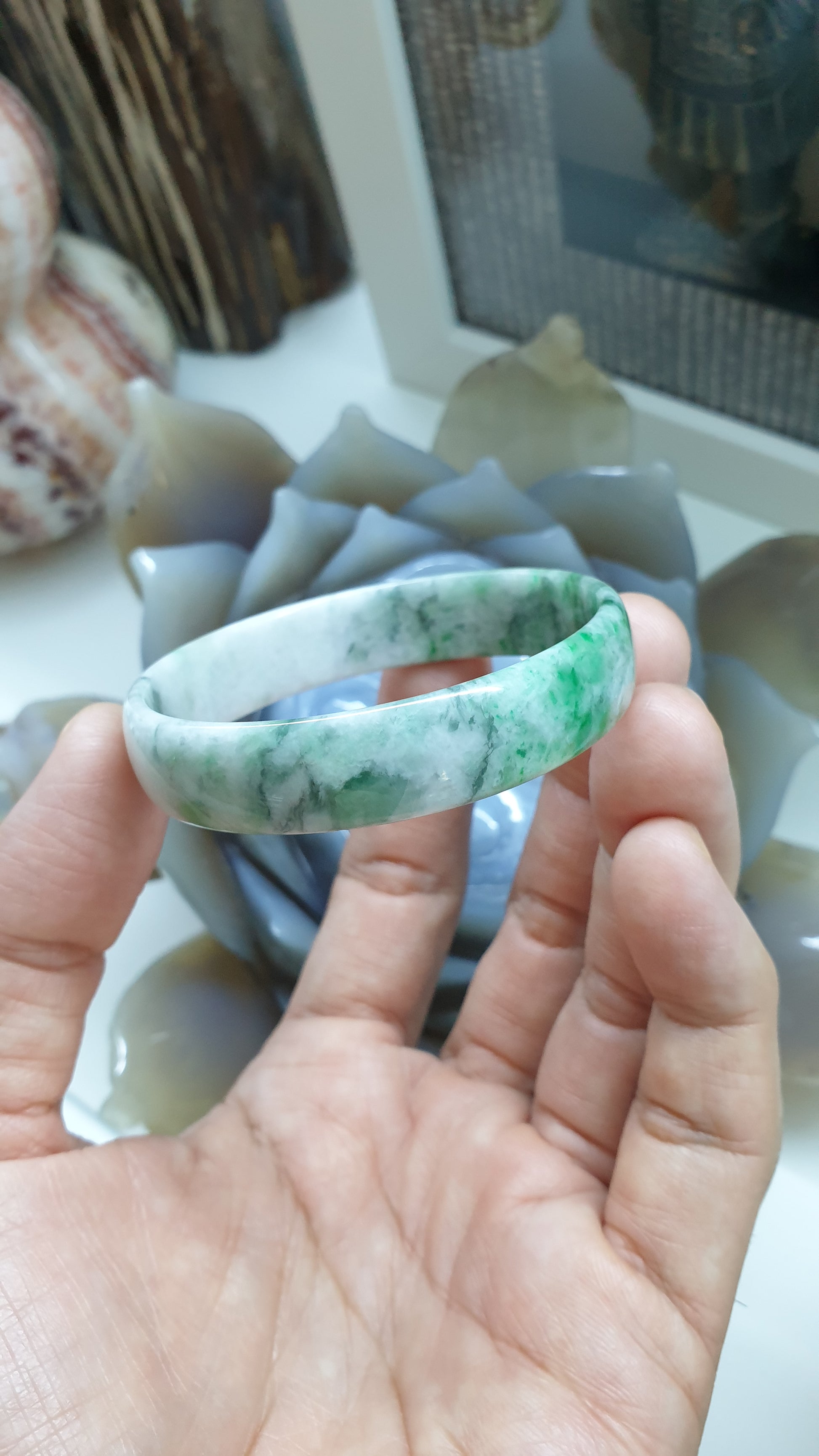 Moss in Snow Jade Square Edge Bangle (S 52.8) | Fei Cui Type A Jadeite