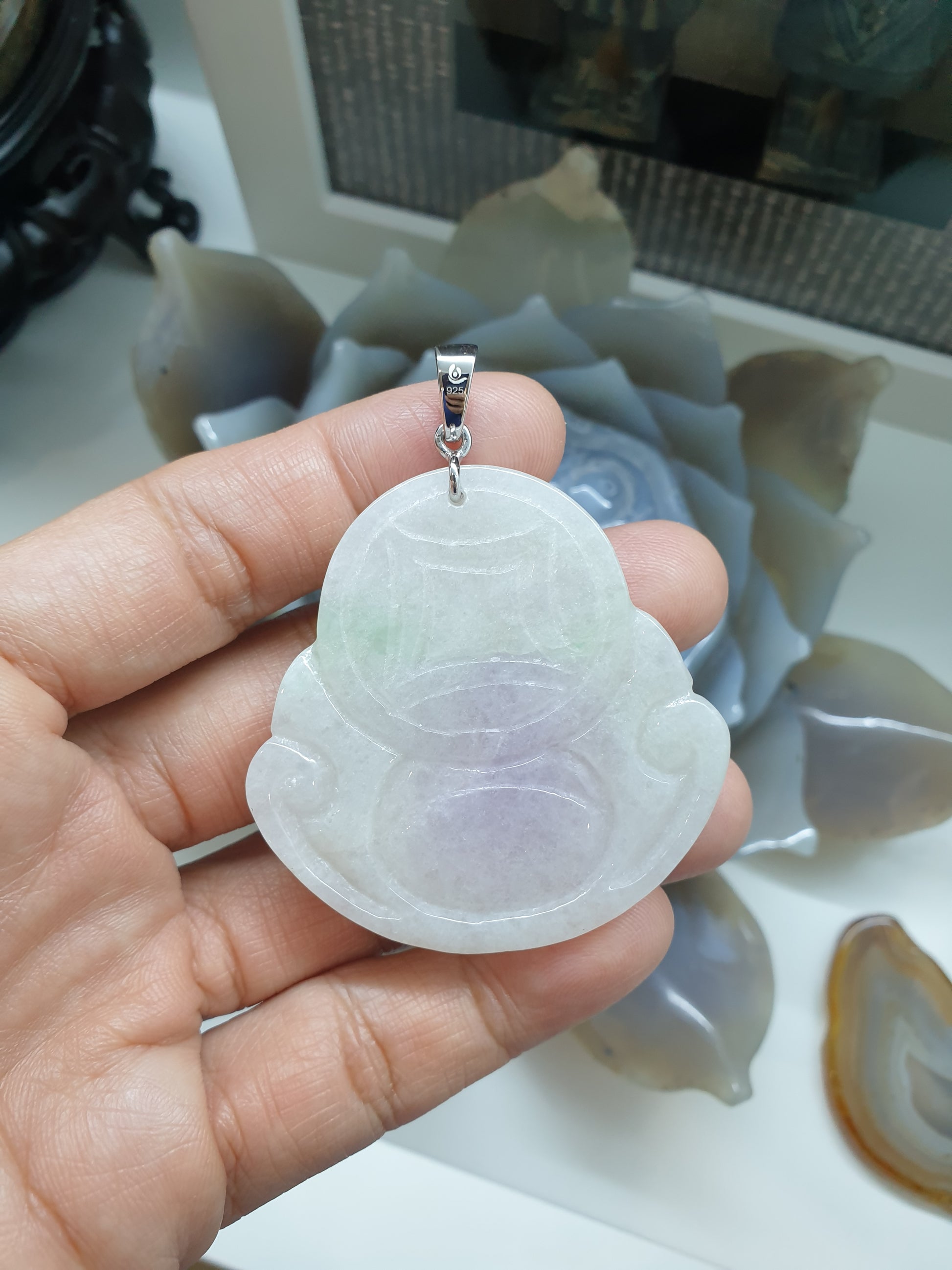 Lavender Jade Happy Buddha Pendant | Sterling Silver | Wealth & Fortune Jewelry
