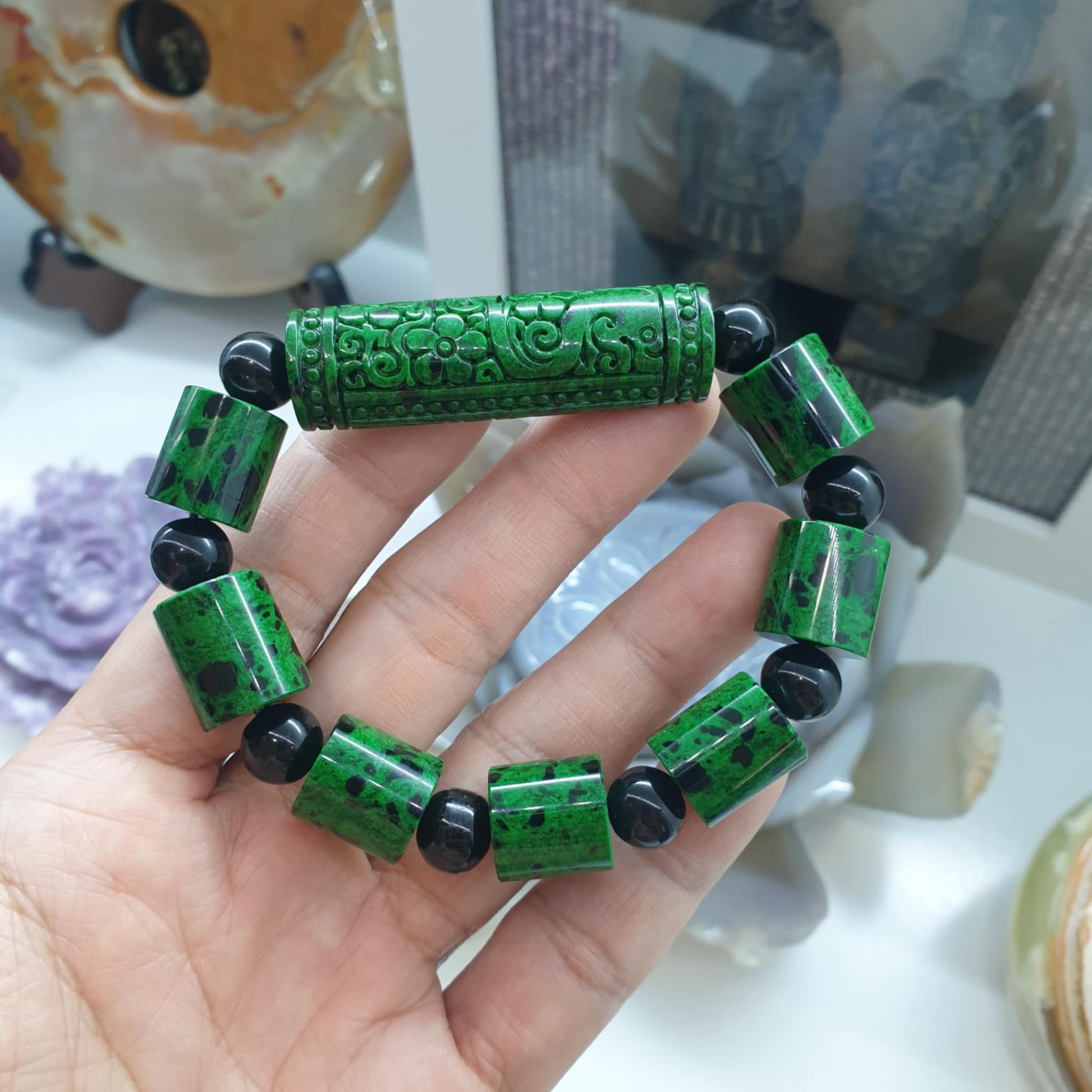 Discover the allure of Mawsitsit, one of the rarest gemstones in the Jadeite family, celebrated for its intense chrome green glow and natural black speckled patterns that make each bead completely unique. Every bracelet is one-of-a-kind — no two are ever alike.